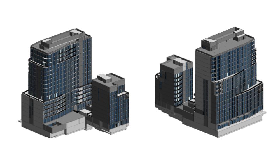 1. Development of LOD 300 architectural, structural, MEP, RCP, and building envelope models based on received design drawings.