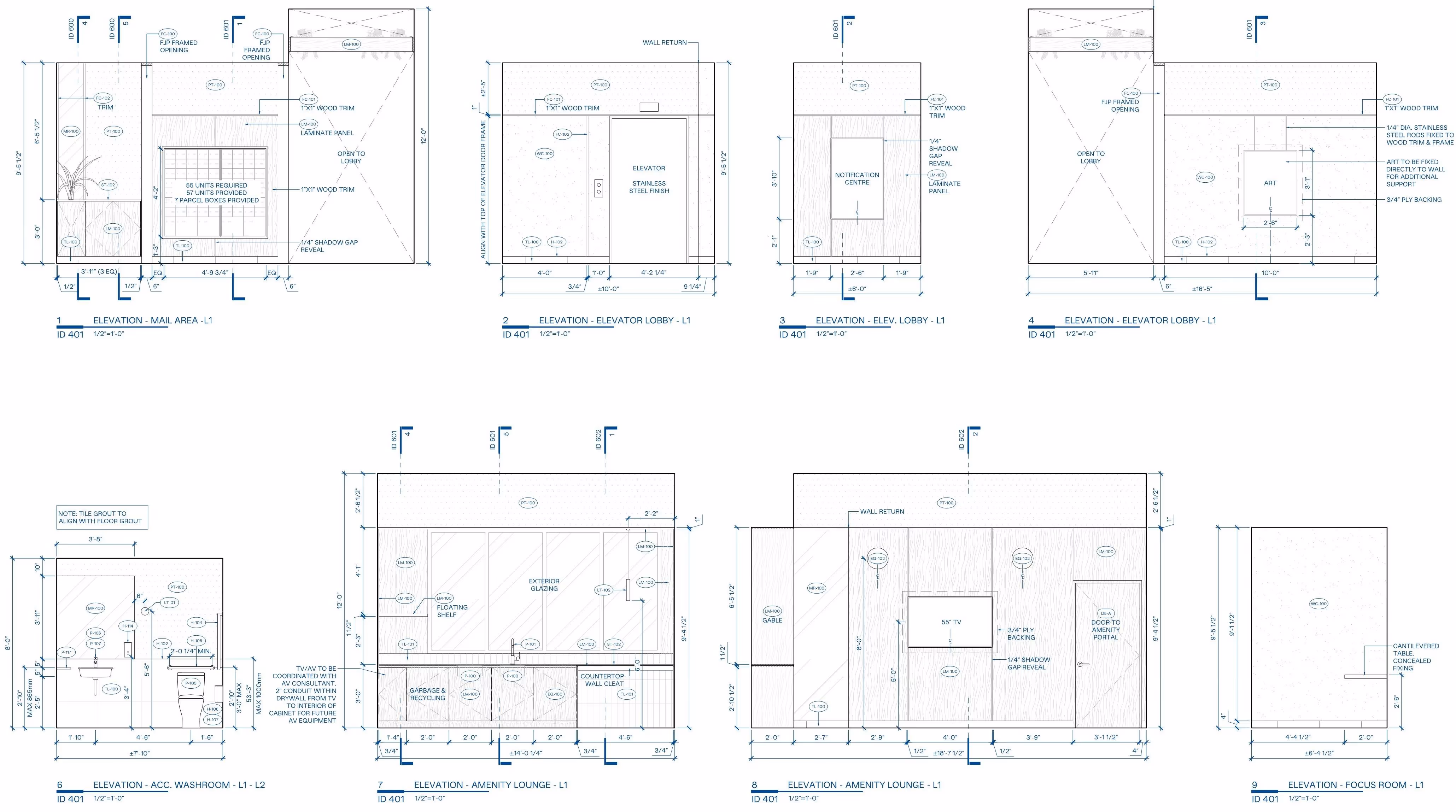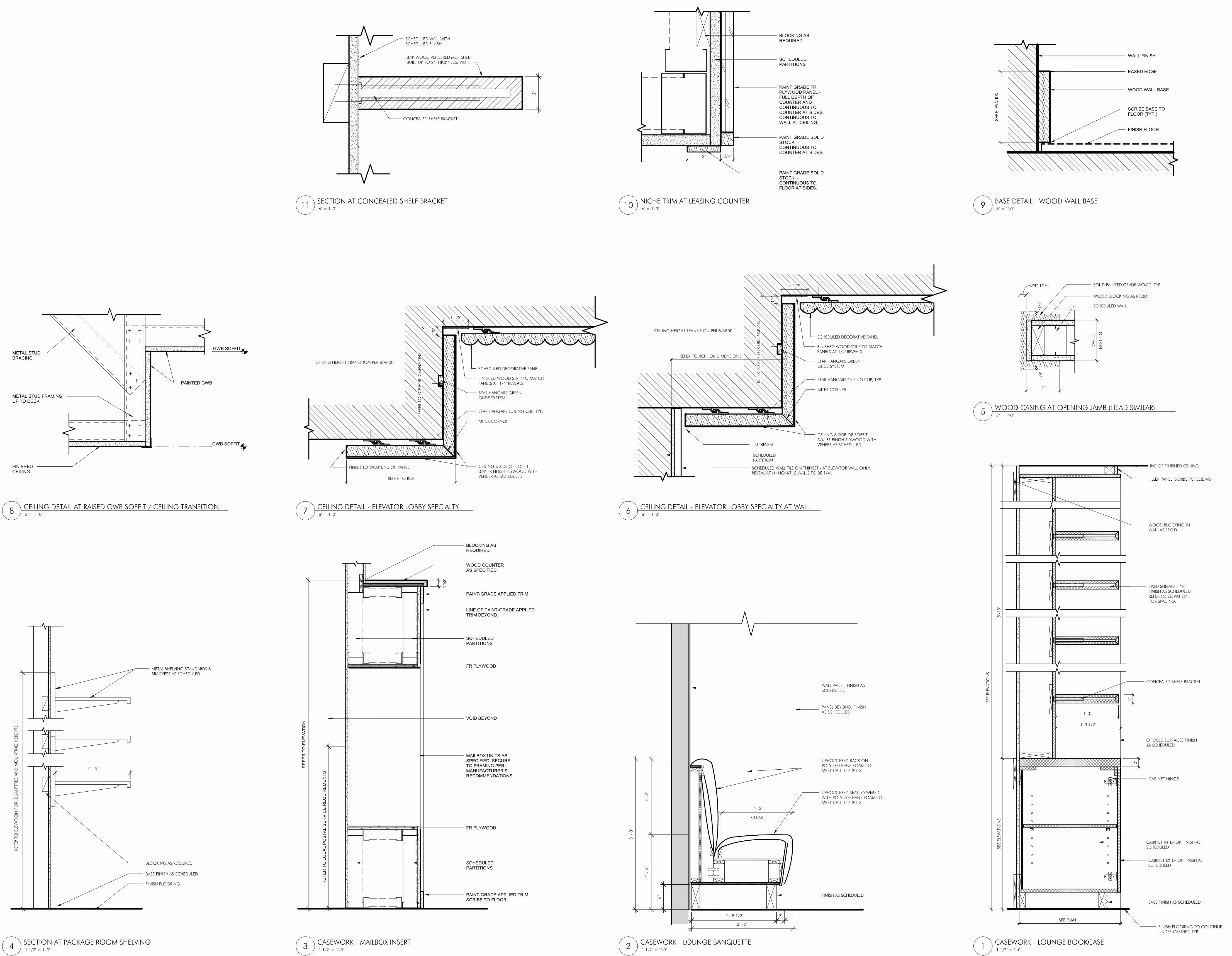Our interior documentation packages incorporate detailed plans, RCPs, flooring layouts, wall elevations, millwork shop drawings, schedules, material specifications, and installation details. Our experts use Revit and BIM-centric workflows to prepare drawings that are properly dimensioned, clearly annotated, and technically coordinated for smooth execution on site.